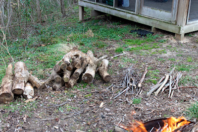When Nick and I go camping, we have a certain routine that we do (which I learned about when we first started camping together). First you gather all your fire wood and then organize it into piles according to size. Here is the first pile which I (thought) was organized by size-